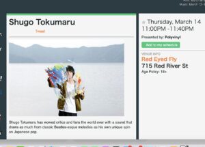 2011年に「Stereogum」の「最も期待するアルバム50枚」に選ばれたり、アメリカでの人気も確実になって、2013年にトクマル君は僕がREP(担当)をしていたテキサス州オースティンのコンベンション、SXSWに出演した。それもニューヨークの音楽サイト「Brooklyn Vegan」のショーケースに出てきたので驚いた。お客の反応もすごく良くて、世界で受ける日本の音楽が出てきたと感じた。